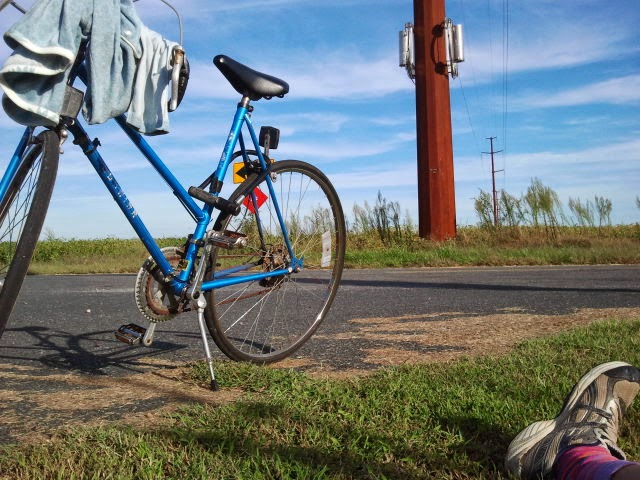 First, I biked along Dover Bridge Road towards Preston. I started from across the river in Talbot County, so I had to cross the bridge over the blue river. The bridge has no shoulder for a bike. So I waited at the bridge until the coast was clear from cars, and then sped across as fast as I could. I biked in the very center of the lane, so that if a car did come up from behind they wouldn't try to pass me. They'd just have to be a tiny bit patient.